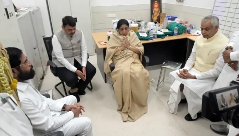 सुनेत्रा पवार हाथ जोड़े बैठी नजर आ रही हैं, जबकि उनके दोनों तरफ मुख्यमंत्री फड़णवीस और राज्यपाल आचार्य देवव्रत खड़े हैं. इस माहौल से स्पष्ट है कि परिवार और राजनीतिक नेताओं के लिए यह क्षण अत्यंत भावुक और कठिन है.