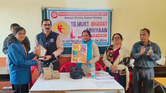 Asansol News: स्वास्थ्य एवं परिवार कल्याण विभाग द्वारा 100 दिवसीय सघन टीबी उन्मूलन कार्यक्रम अभियान के तहत 13 जनवरी, 2025 सोमवार को आसनसोल में ईस्टर्न रेलवे बॉयज हायर सेकेंडरी स्कूल में एक चित्रकला प्रतियोगिता आयोजित की गई. इस कार्यक्रम का उद्देश्य टीबी के बारे में जागरूकता बढ़ाना और “टीबी मुक्त भारत” के दृष्टिकोण को बढ़ावा देना था.