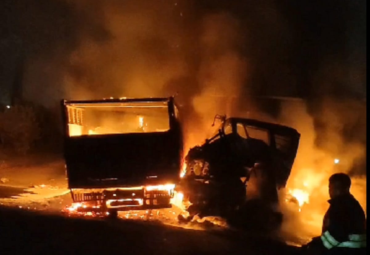 टक्कर दोनों वाहनों में लगी भीषण आग, दर्दनाक मौत