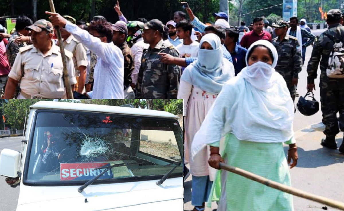 - लाठीचार्ज के बाद पुलिस वाहन के शीशे तोड़े