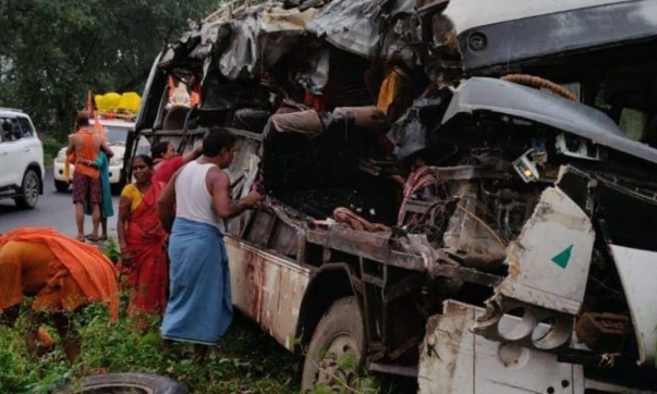 देवघर के एसडीओ रवि कुमार के मुताबिक यह हादसा सुबह करीब 5 बजे जमुनिया के पास हुआ. बाबा बैद्यनाथ मंदिर से दर्शन कर श्रद्धालु बस में सवार होकर बासुकिनाथ धाम जा रहे थे. इसी दौरान चालक को झपकी आ गई और बस गैस सिलेंडर से लदे ट्रक से टकरा गई. टक्कर इतनी जोरदार थी कि बस आगे बढ़ते हुए ईंट के ढेर से जा भिड़ी. मौके पर ही चार श्रद्धालुओं की मौत हो गई, जबकि एक की मौत इलाज के दौरान अस्पताल में हुई.