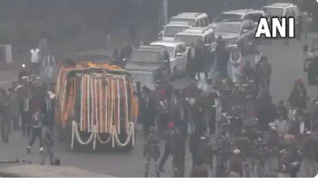 #WATCH दिल्ली | पूर्व प्रधानमंत्री डॉ. मनमोहन सिंह के पार्थिव शरीर को अंतिम संस्कार के लिए निगम बोध घाट पर लाया गया। pic.twitter.com/f0Nq1SHurE