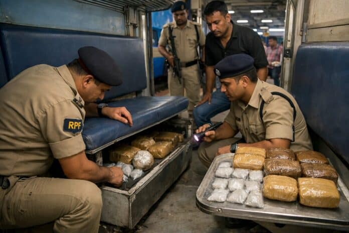 Kolkata Rail : मालदा मंडल में रेलवे परिसरों और ट्रेनों की सुरक्षा को लेकर आरपीएफ लगातार सतर्कता बरत रही है. मंडल रेल प्रबंधक मनीष कुमार गुप्ता के मार्गदर्शन और मंडल सुरक्षा आयुक्त आशिम कुमार कुल्लू के पर्यवेक्षण में चलाए जा रहे अभियानों के तहत 09 अप्रैल 2026 को मालदा टाउन रेलवे स्टेशन पर बड़ी सफलता हाथ लगी. “ऑपरेशन नारकोस” के तहत चलाए गए विशेष जांच अभियान में आरपीएफ की संयुक्त टीम ने एक संदिग्ध लावारिस बैग से भारी मात्रा में मादक पदार्थ बरामद किया. यह कार्रवाई ट्रेन संख्या 15646 चारलापल्ली एक्सप्रेस के प्लेटफॉर्म संख्या 01 पर पहुंचने के बाद की गई सघन जांच के दौरान सामने आई.