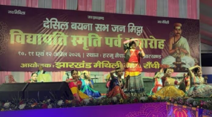 Vidyapati Smriti Parv: रांची के हरमू मैदान में झारखंड मैथिली मंच की ओर से चल रहे त्रिदिवसीय ‘विद्यापति स्मृति पर्व’ के दूसरे दिन कार्यक्रम ने सांस्कृतिक और बौद्धिक दोनों ही स्तरों पर खास छाप छोड़ी. आयोजन के दौरान एक ओर जहां पारंपरिक प्रस्तुतियों ने माहौल को जीवंत किया, वहीं दूसरी ओर मैथिली भाषा और समाज से जुड़े मुद्दों पर गंभीर विमर्श भी हुआ.