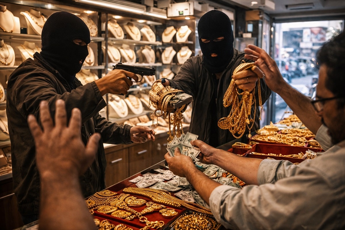 दुकान में प्रवेश करते ही बदमाशों ने हथियार निकालकर दुकानदार को धमकाया और उसे बंधक बना लिया. इसके बाद उन्होंने काउंटर और अलमारियों में रखे आभूषणों को निकालना शुरू कर दिया.