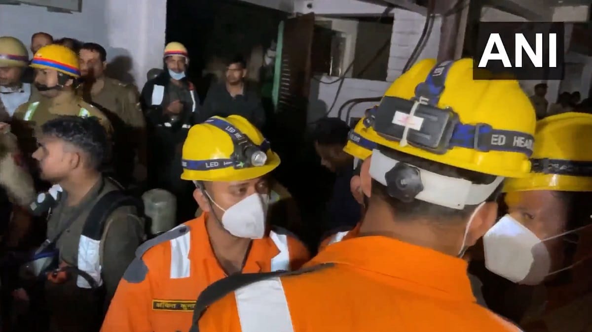 #WATCH | Kanpur, UP | Rescue operations continue at the building where a fire broke out in the Chaman Ganj area of the city. SDRF and police officials are at the spot. pic.twitter.com/IAj4atSyQ4