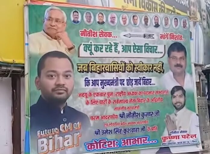 Nishant Kumar: बिहार की राजनीति में शनिवार को एक नया दृश्य देखने को मिला, जब पटना स्थित जेडीयू कार्यालय के बाहर लगे एक पोस्टर ने सत्ता के भविष्य को लेकर चर्चाओं को और तेज कर दिया. इस पोस्टर में मुख्यमंत्री नीतीश कुमार के पुत्र निशांत कुमार को बिहार के संभावित अगले नेतृत्व के रूप में पेश किया गया है. पोस्टर सामने आते ही राजनीतिक गलियारों में अटकलों का दौर तेज हो गया. खास बात यह है कि पिछले कुछ दिनों से मुख्यमंत्री नीतीश कुमार के भविष्य, राज्यसभा की भूमिका और बिहार में नेतृत्व परिवर्तन की संभावनाओं को लेकर लगातार चर्चा चल रही है. ऐसे माहौल में यह पोस्टर महज प्रचार सामग्री नहीं, बल्कि एक राजनीतिक संदेश के रूप में देखा जा रहा है.