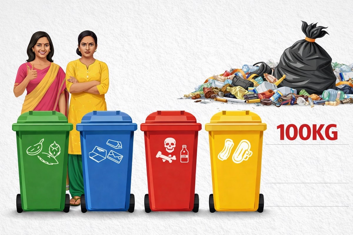 अब तक आम तौर पर लोग केवल गीले और सूखे कचरे को अलग करते थे, लेकिन 1 अप्रैल से यह व्यवस्था और सख्त हो जाएगी. अब कचरे को चार अलग-अलग श्रेणियों में बांटना अनिवार्य होगा. इसके लिए अलग-अलग रंग के डस्टबिन निर्धारित किए गए हैं. हरे रंग के डस्टबिन में रसोई, सब्जी, फल और अन्य जैविक कचरा रखा जाएगा. नीले रंग के डस्टबिन में प्लास्टिक, कागज, धातु और अन्य रिसाइकिल योग्य सामग्री डाली जाएगी. लाल रंग के डस्टबिन का उपयोग डायपर, नैपकिन और अन्य सैनिटरी वेस्ट के लिए होगा.