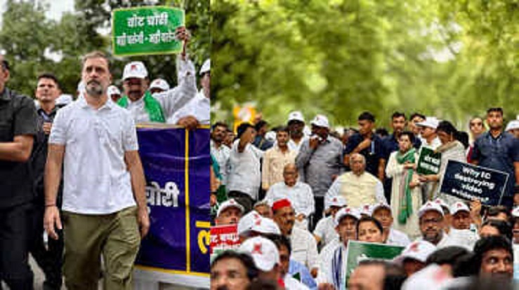 दिल्ली में वोट चोरी पर विपक्षी संग्राम; राहुल-प्रियंका हिरासत में, अखिलेश ने बैरिकेडिंग फांदी