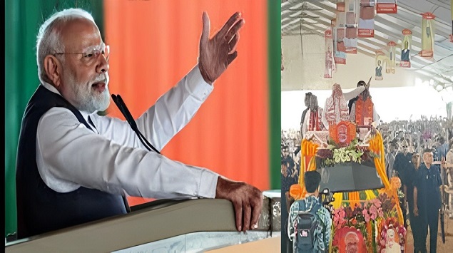 प्रधानमंत्री नरेंद्र मोदी ने परिवर्तन महासभा में हुंकार भरते हुए कहा कि वे गारंटी देते हैं कि झारखंड में जब बीजेपी की सरकार बनेगी, झारखंड में जब एनडीए की सरकार बनेगी तो रोटी, बेटी और माटी की सुरक्षा सुनिश्चित कर दी जाएगी.
