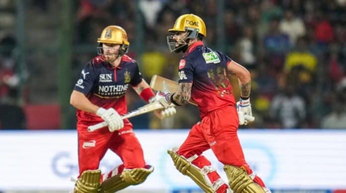 RCB vs CSK: RCB और CSK के मुकाबले में बेंगलुरु ने पहले बल्लेबाजी करते हुए 250 रन का विशाल स्कोर खड़ा कर दिया. टिम डेविड ने 25 गेंदों में नाबाद 70 रन की तूफानी पारी खेलकर मैच का रंग बदल दिया. अब चेन्नई के सामने जीत के लिए 251 रन का बेहद मुश्किल लक्ष्य है.
