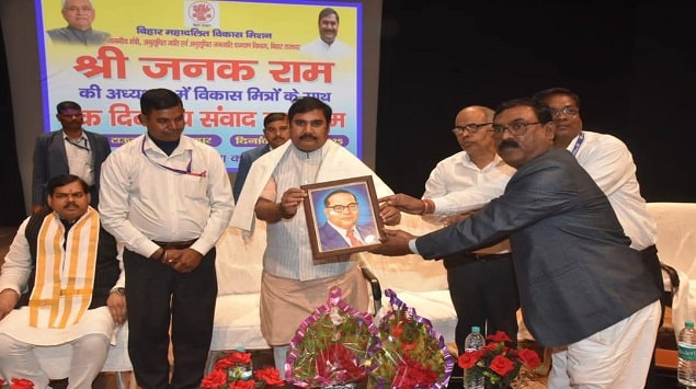 Bhagalpur News: एससी-एसटी वेलफेयर मिनिस्टर जनक राम शुक्रवार को भागलपुर पहुंचे और उन्होंने टाउन हॉल में विकास मित्रों के साथ संवाद किया. इस एक दिवसीय संवाद कार्यक्रम में जिले के सभी नियोजित 297 विकास मित्र उपस्थित रहे. मंत्री द्वारा वर्त्तमान में संचालित सभी विभागीय योजनाओं पर विस्तृत रूप से प्रकाश डाला गया. उनके द्वारा संवाद कार्यक्रम में विकास मित्रों को निदेशित किया गया कि उक्त संचालित योजनाओं के सफल क्रियान्वयन में आप सभी की अहम भूमिका है.