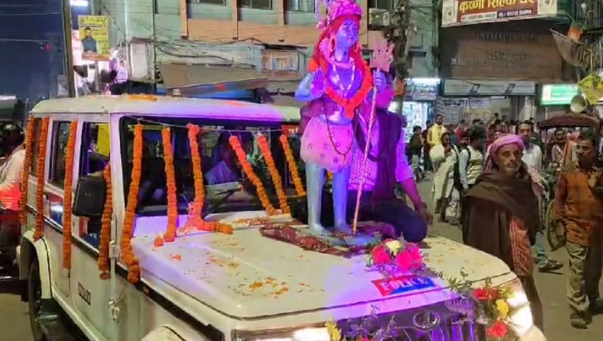 Bihar News: बिहार के भागलपुर में महाशिवरात्रि(Mahashivaratri) पर विभिन्न जगहों से धूमधाम से शिवजी की भव्य बारात निकली. महामिलन के इस पर्व पर लोग उत्साहित दिखे. झांकियों ने श्रद्धालुओं का मन माेह लिया. बारात का जगह-जगह पुष्पवर्षा कर स्वागत किया गया. कलाकारों ने भगवान भोलेनाथ, माता पार्वती सहित भूत-प्रेत का वेश धारण कर महाशिवरात्रि को शिवमय बना दिया. जिधर से झाकियां निकली, उधर ही लोगों की भीड़ जुटी रही.