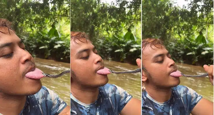 कुछ पलों तक सांप उसकी इस हरकत को देखता रहता है, लेकिन अचानक वह व्यक्ति की जीभ पर झपट्टा मार देता है. सांप इतनी मजबूती से जीभ को पकड़ लेता है कि शख्स कई बार कोशिश करने के बावजूद खुद को छुड़ा नहीं पाता.