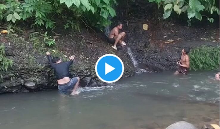 वीडियो में दिखता है कि नदी के किनारे ऊंची चट्टान और हरे-भरे पेड़ों के बीच कुछ लड़के नहा रहे थे. उनमें से एक चट्टान पर चढ़कर वीडियो बनाना शुरू करता है. तभी पेड़ों के पीछे से अचानक एक बड़ा सांप आता है और लड़के के करीब पहुंच जाता है. ऐसा लगता है कि सांप उसके शरीर को छू जाता है, जिससे वह बुरी तरह डरकर भागने लगता है. वहां मौजूद अन्य लड़कों में भी अफरा-तफरी मच जाती है.