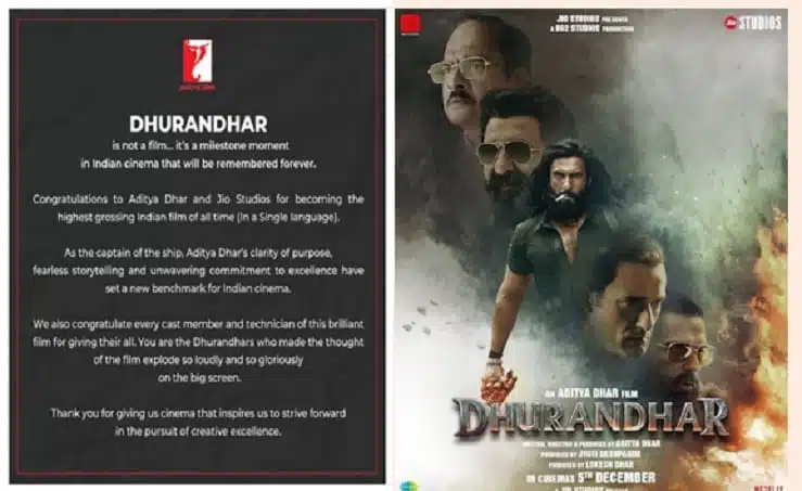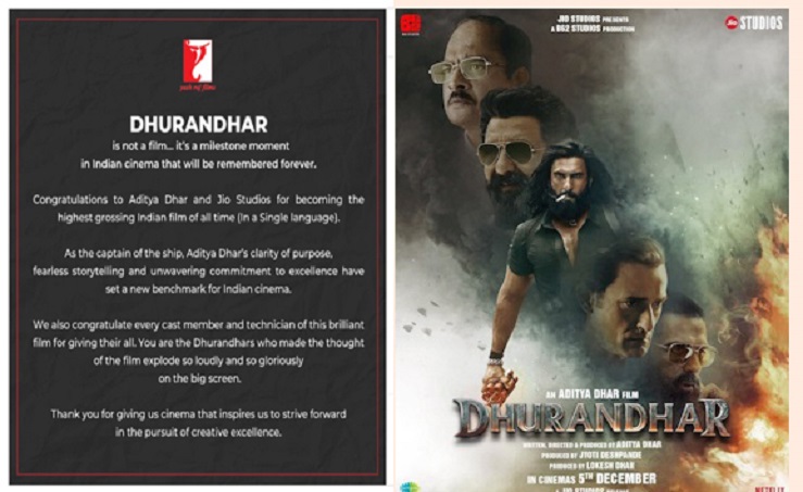 यश राज फिल्म्स ने अपने संदेश में फिल्म के निर्देशक आदित्य धर के काम को उल्लेखनीय बताया. पोस्ट में कहा गया कि फिल्म की कहानी और उसके प्रस्तुतिकरण में स्पष्ट सोच नजर आती है. इसके साथ ही फिल्म के निर्माण में शामिल Jio Studios को भी बधाई दी गई.